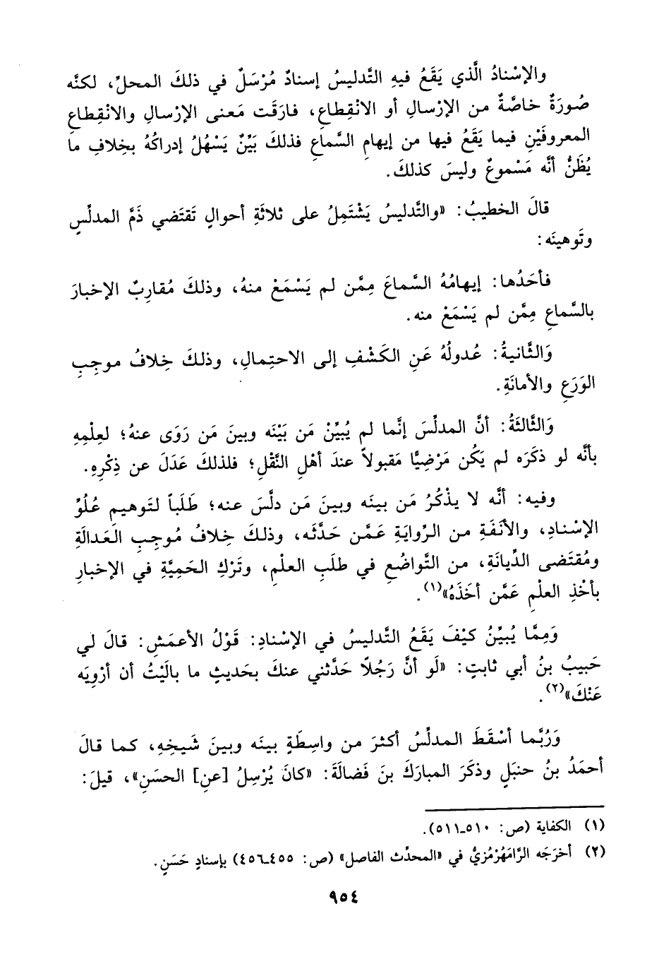 قال الخطيب: " والتدليس يشتمل على ثلاثة أحوال تقتضي ذم المدلس وتوهينه: