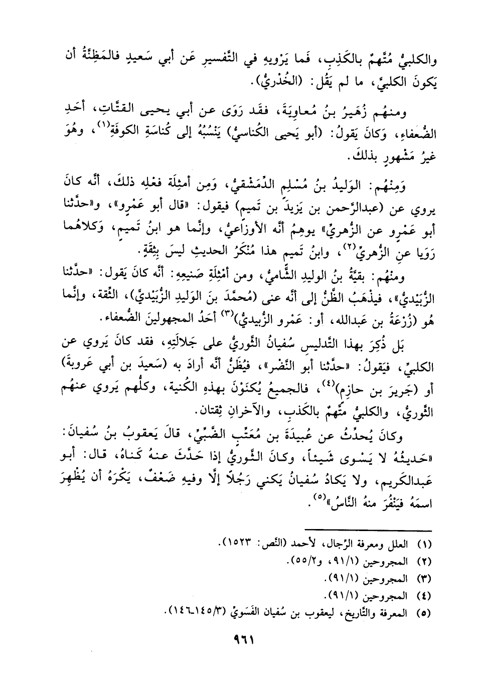 بل ذكر بهذا التدليس سفيان الثوري على جلالته، فقد كان يروي عن الكلبي، فيقول: " حدثنا أبو النضر " فيظن أنه أراد به (سعيد بن أبي عروبة) أو (جرير بن حازم) (¬4)، فالجميع يكنون بهذه الكنية، وكلهم يروي عنهم الثوري، والكلبي متهم بالكذب، والآخران ثقتان.