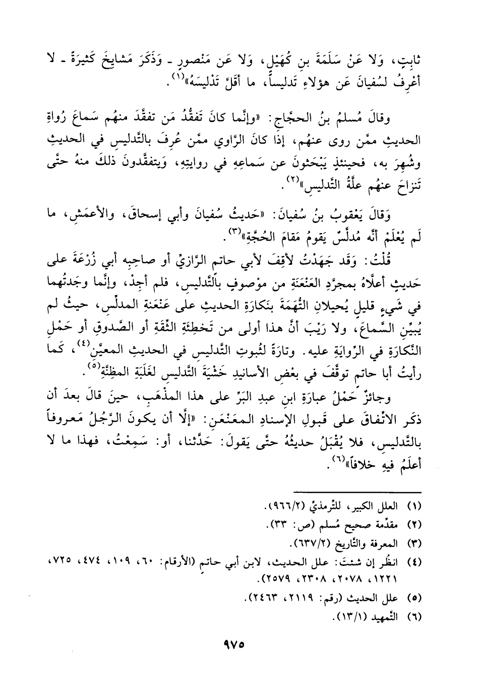 وجائز حمل عبارة ابن عبد البر على هذا المذهب، حين قال بعد أن ذكر الاتفاق على الإسناد المعنعن: " إلا أن يكون الرجل معروفاً بالتدليس، فلا يقبل حديثه حتى يقول: حدثنا، أو سمعت، فهذا ما لا أعلم فيه خلافاً " (¬6).