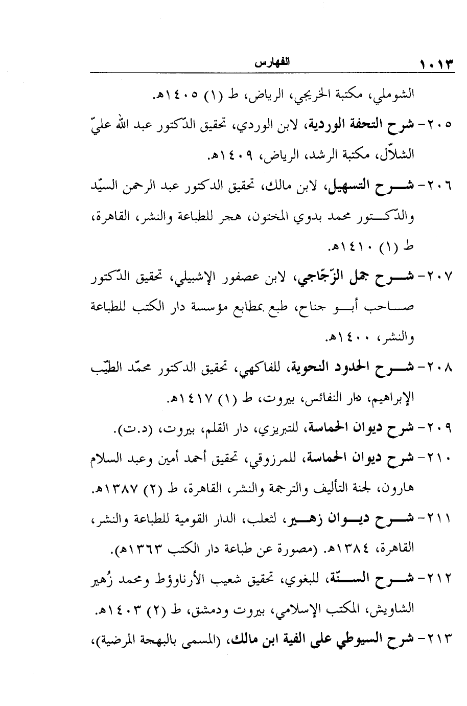 205- شرح التحفة الوردية، لابن الوردي، تحقيق الدّكتور عبد الله عليّ الشلاّل، مكتبة الرشد، الرياض، 1409هـ.