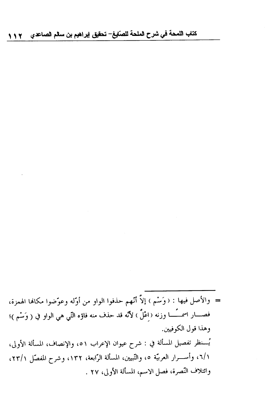 = والأصل فيها: (وَسْم) إلاَّ أنّهم حذفوا الواو من أوّله وعوّضوا مكانها الهمزة، فصار اسما وزنه (اِعْلٌ) لأنّه قد حذف منه فاؤه التّي هي الواو في (وَسْم) ؛ وهذا قول الكوفيين.