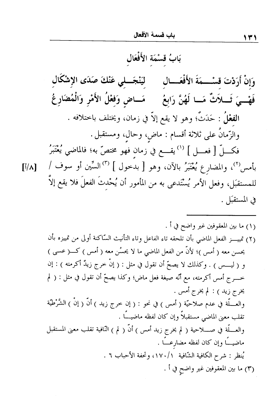 وَإِنْ أَرَدْتَ قِسْمَةَ الأَفْعَالِ ... لِيَنْجَلِي عَنْكَ صَدَى الإِشْكَالِ