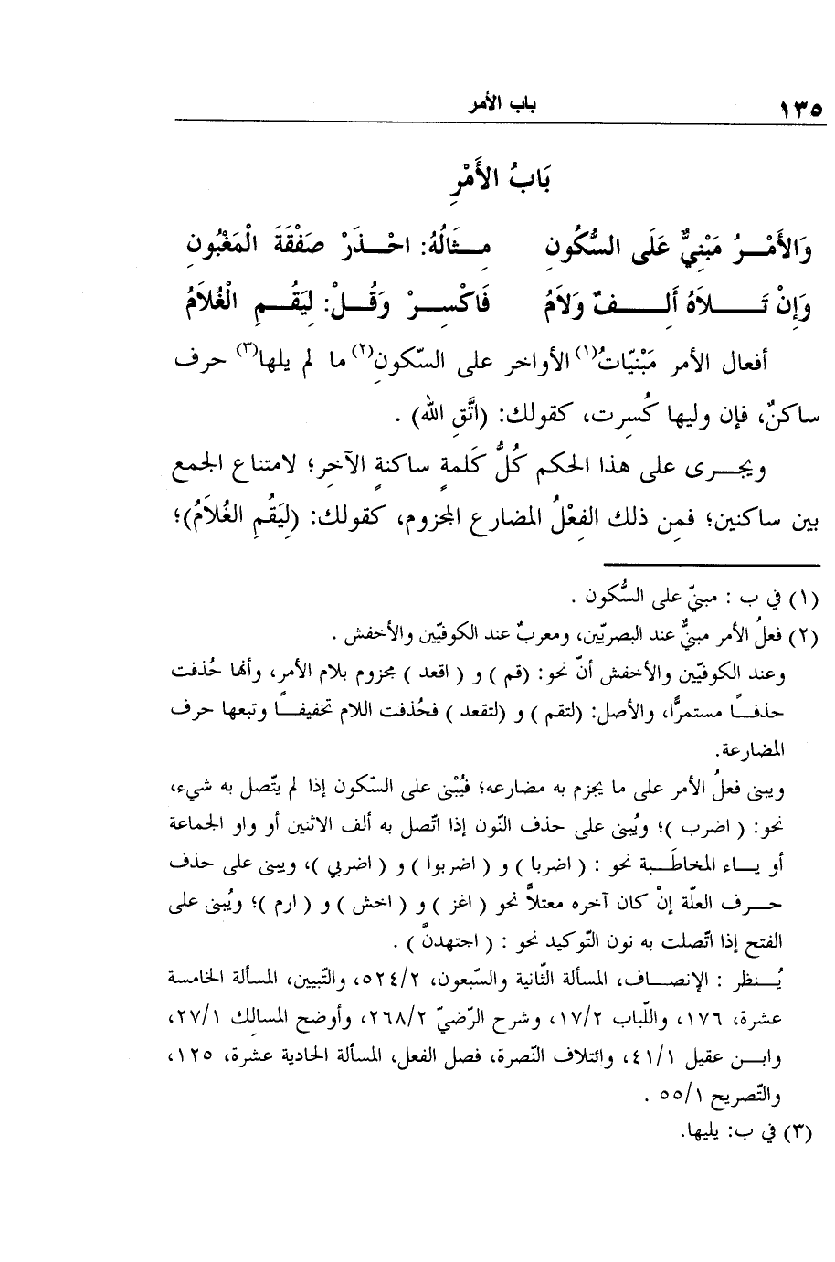 يُنظر: الإنصاف، المسألة الثّانية والسّبعون، 2/524، والتّبيين، المسألة الخامسة عشرة، 176، واللّباب 2/17، وشرح الرّضيّ 2/268، وأوضح المسالِك 1/27، وابن عقيل 1/41، وائتلاف النّصرة، فصل الفعل، المسألة الحادية عشرة، 125، والتّصريح 1/55.