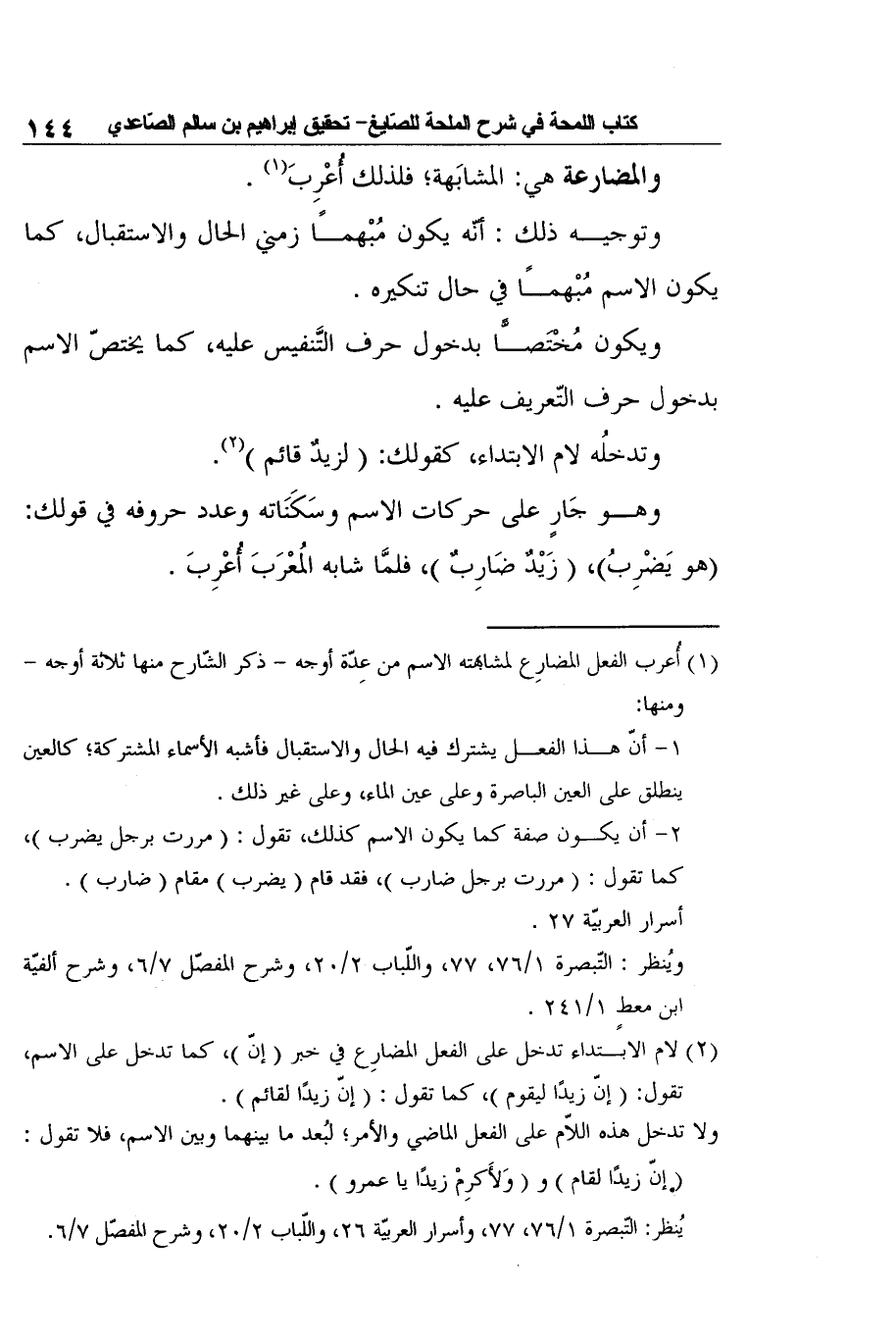 يُنظر: التّبصرة 1/76، 77، وأسرار العربيّة 26، واللّباب 2/20، وشرح المفصّل 7/6.