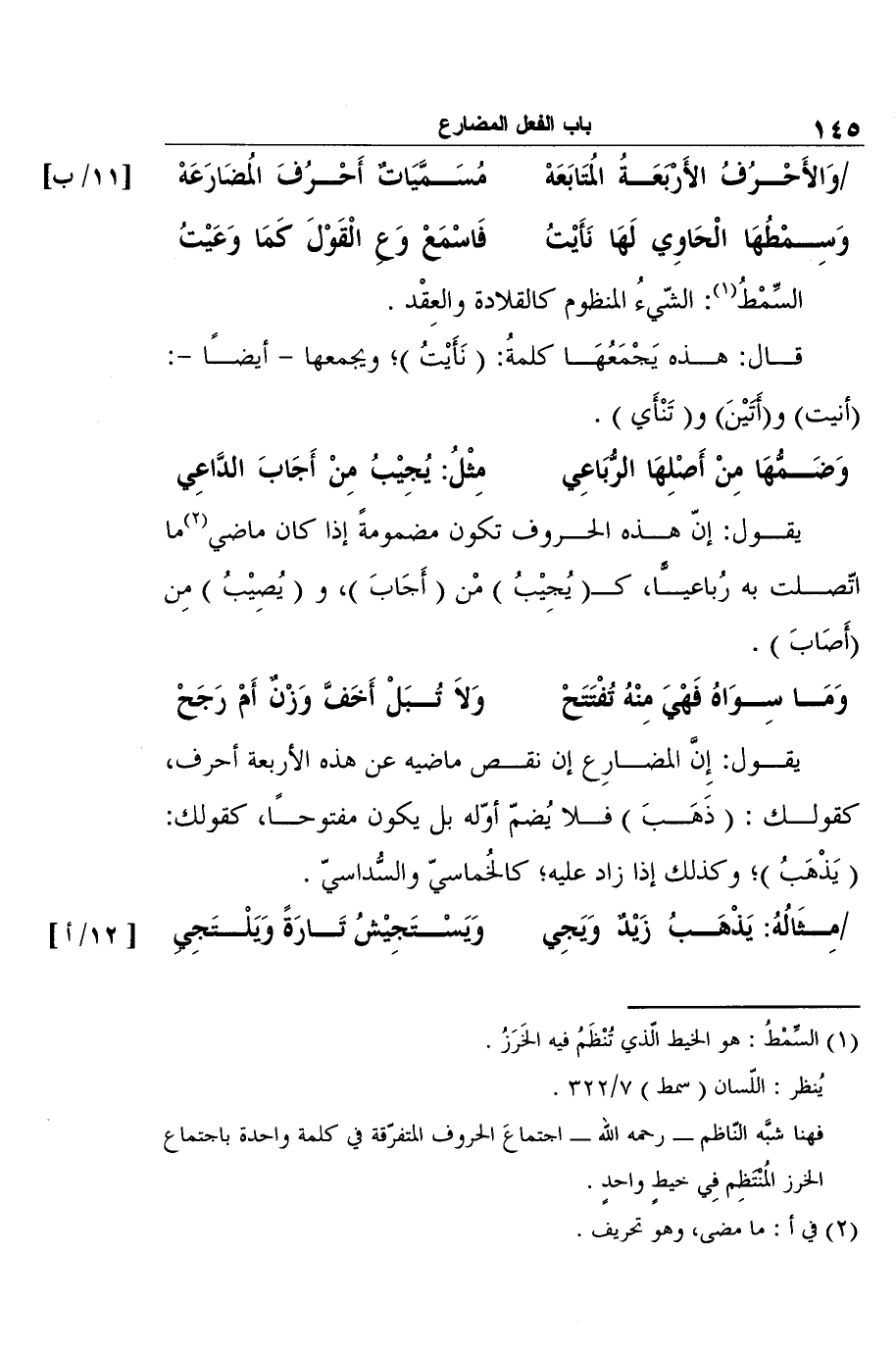 وَالأَحْرُفُ الأَرْبَعَةُ المُتَابَعَهْ ... مُسَمَّيَاتٌ أَحْرُفَ المُضَارَعَهْ