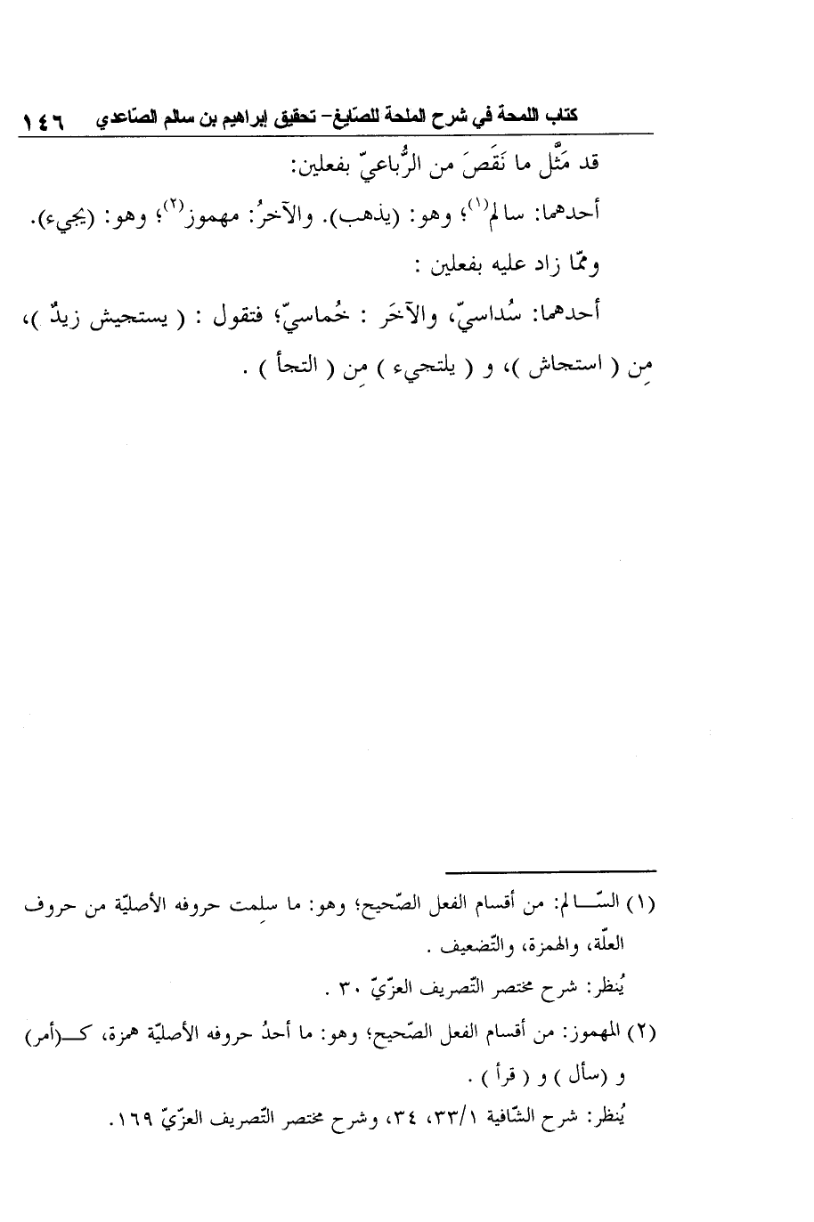 1 السّالم: من أقسام الفعل الصّحيح؛ وهو: ما سلِمت حروفه الأصليّة من حروف العلّة، والهمزة، والتّضعيف.