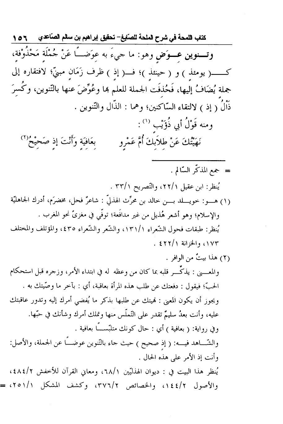 يُنظر هذا البيت في: ديوان الهذليّين1/68،ومعاني القرآن للأخفش2/484، والأصول2/144،والخصائص2/376،وكشف المشكل1/251،وشرح المفصّل 3/29، 9/31، ورصف المباني 411، والخزانة 6/539.