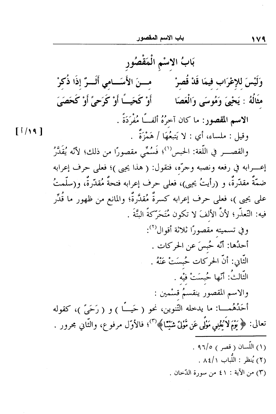 وَلَيْسَ لِلإِعْرَابِ فِيمَا قَدْ قُصِرْ ... مِنَ الأَسَامِي أَثَرٌ إِذَا ذُكِرْ