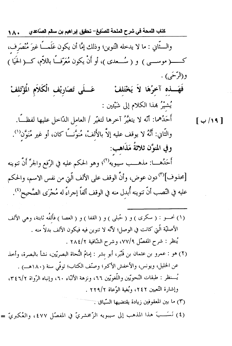 2 هو: عمرو بن عثمان بن قَنْبَر، أبو بِشر: إمامُ النُّحاة البصريّين، نشأ بالبصرة، وأخذ عن الخليل، ويونس، والأخفش الأكبر؛ وصنّف الكتاب؛ توفّي سنة (180هـ) .