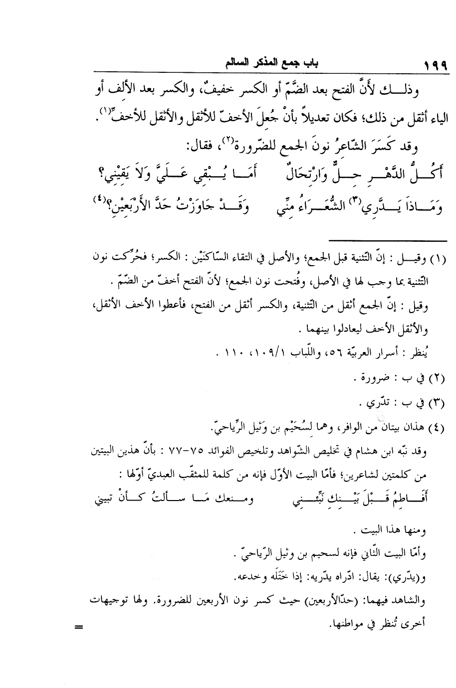 وقد كَسَرَ الشّاعِرُ نونَ الجمع للضّرورة2، فقال: