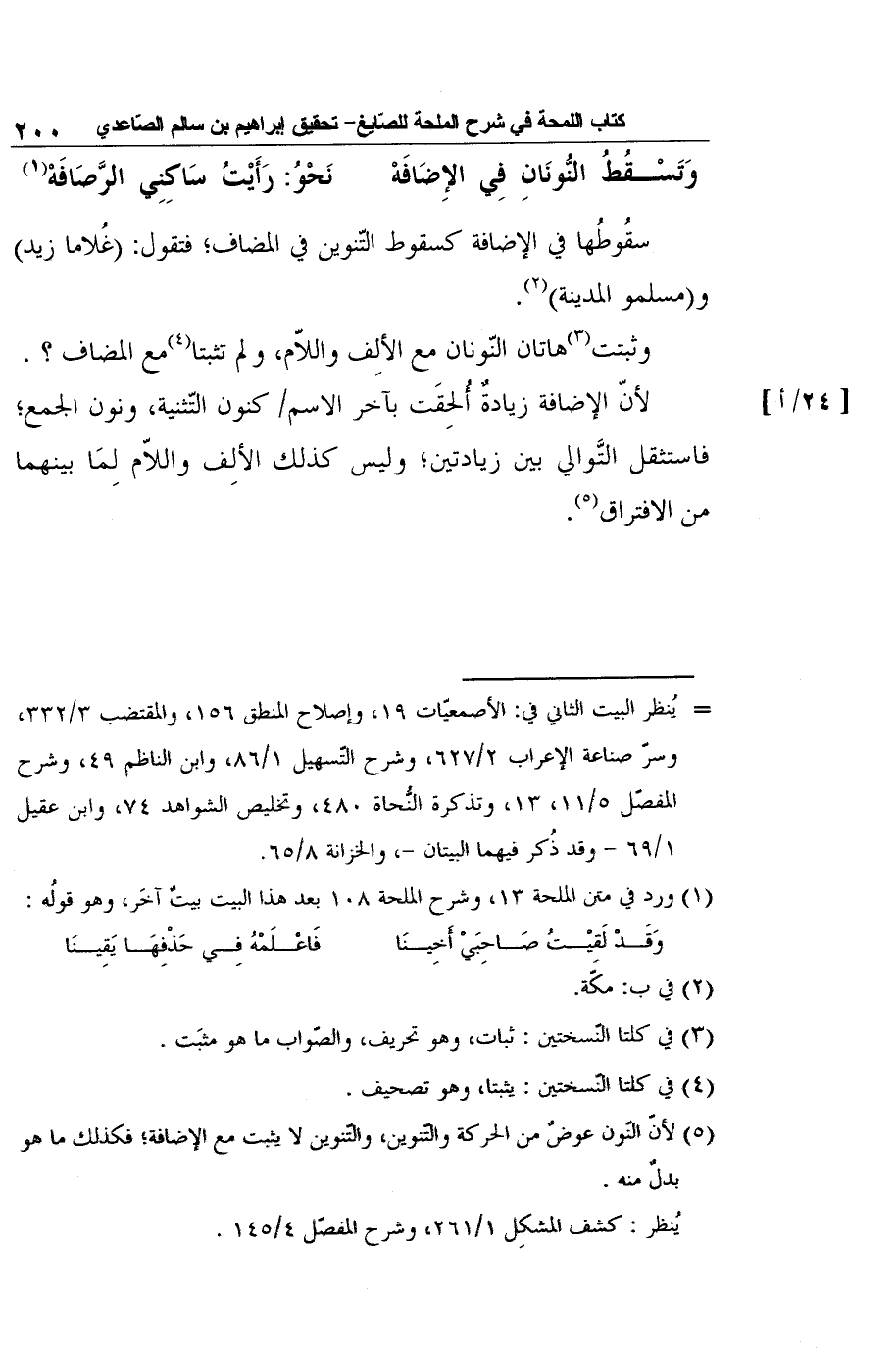 سقُوطُها في الإضافة كسقوط التّنوين في المضاف؛ فتقول: (غُلاما زيد) و (مسلمو المدينة) 2.
