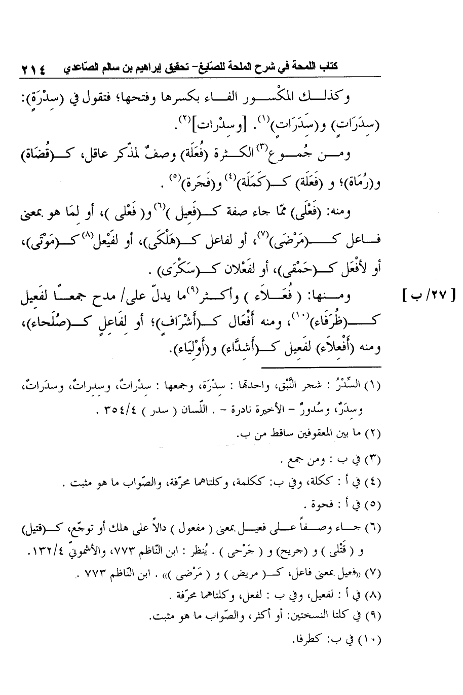 ومنها: (فُعَلاَء) وأكثر9ما يدلّ على مدح جمعًا لفَعِيل [27/ب]