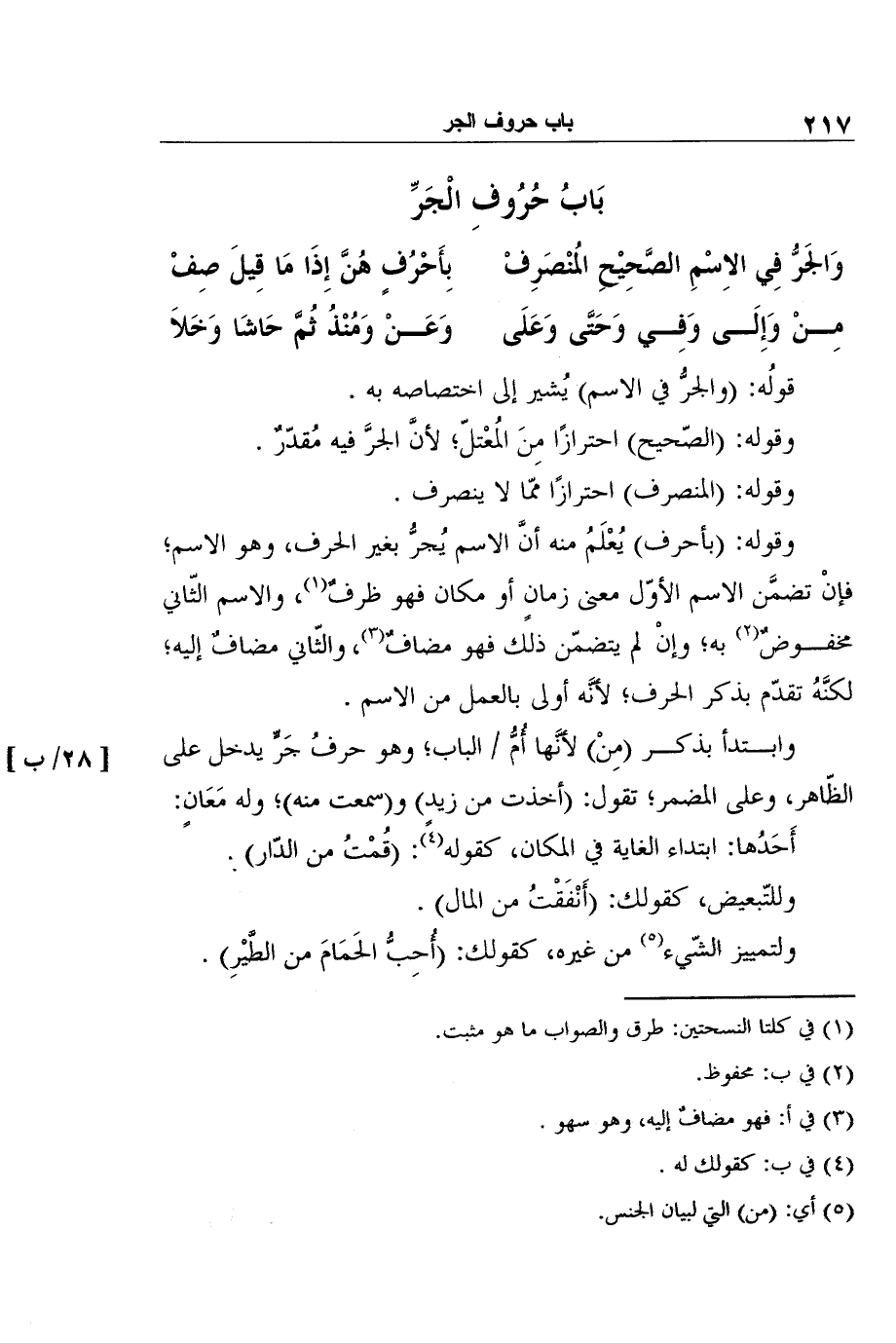 وابتدأ بذكر (مِنْ) لأنَّها أُمُّ [28/ب] الباب؛ وهو حرفُ جَرٍّ يدخل على الظّاهر، وعلى المضمر؛ تقول: (أخذت من زيدٍ) و (سمعت منه) ؛ وله مَعَانٍ: