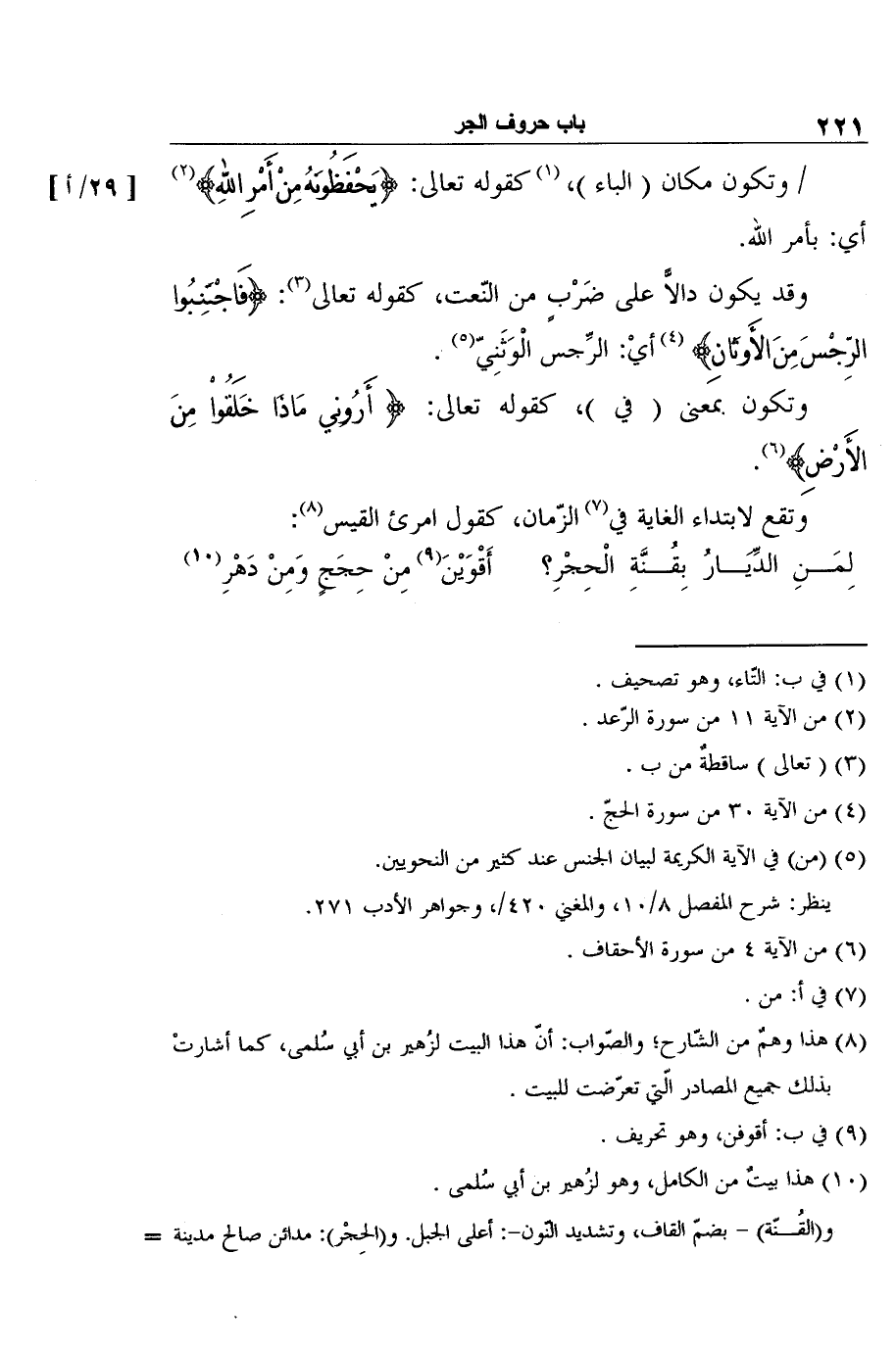 8 هذا وهمٌ من الشّارح؛ والصّواب: أنّ هذا البيت لزُهير بن أبي سُلمى، كما أشارتْ بذلك جميع المصادر الّتي تعرّضت للبيت.