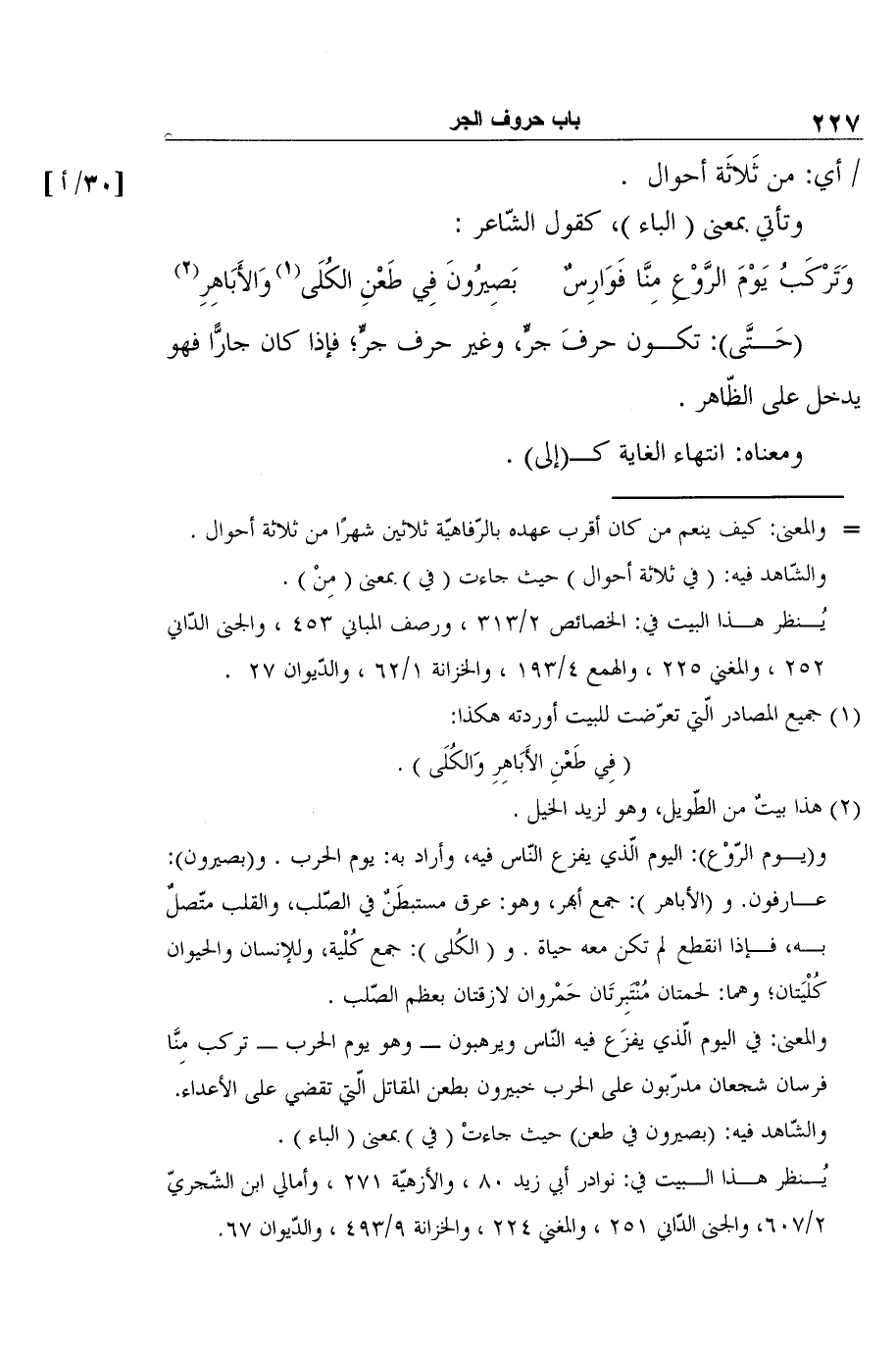 يُنظر هذا البيت في: نوادر أبي زيد 80، والأزهيّة 271، وأمالي ابن الشّجريّ 2/607، والجنى الدّاني 251، والمغني 224، والخزانة 9/493، والدّيوان 67.