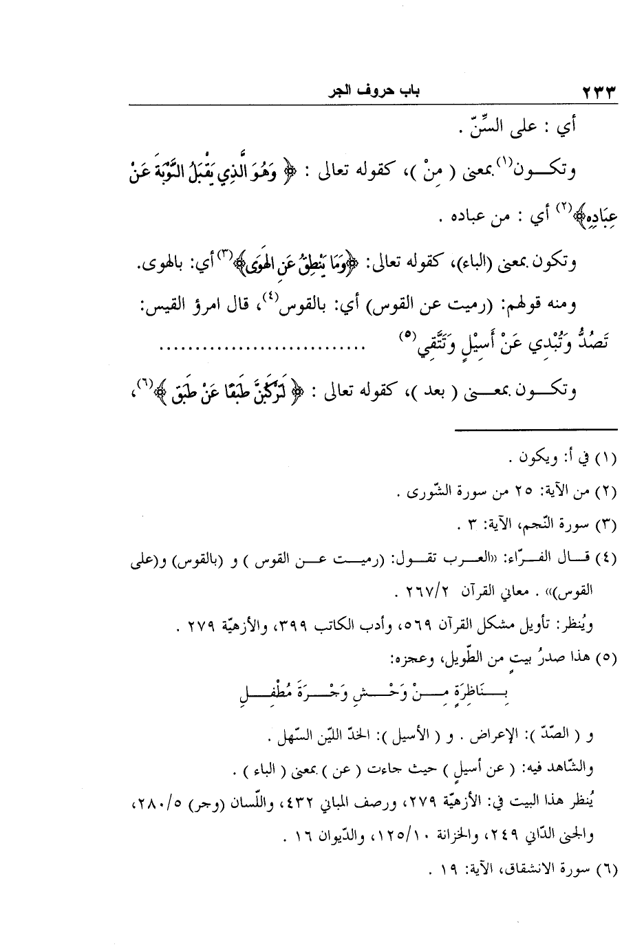 وتكون1 بمعنى (مِنْ) ، كقوله تعالى: {وَهُوَ الَّذِي يَقْبَلُ التَّوْبَةَ عَنْ عِبَادِهِ} 2 أي: من عباده.