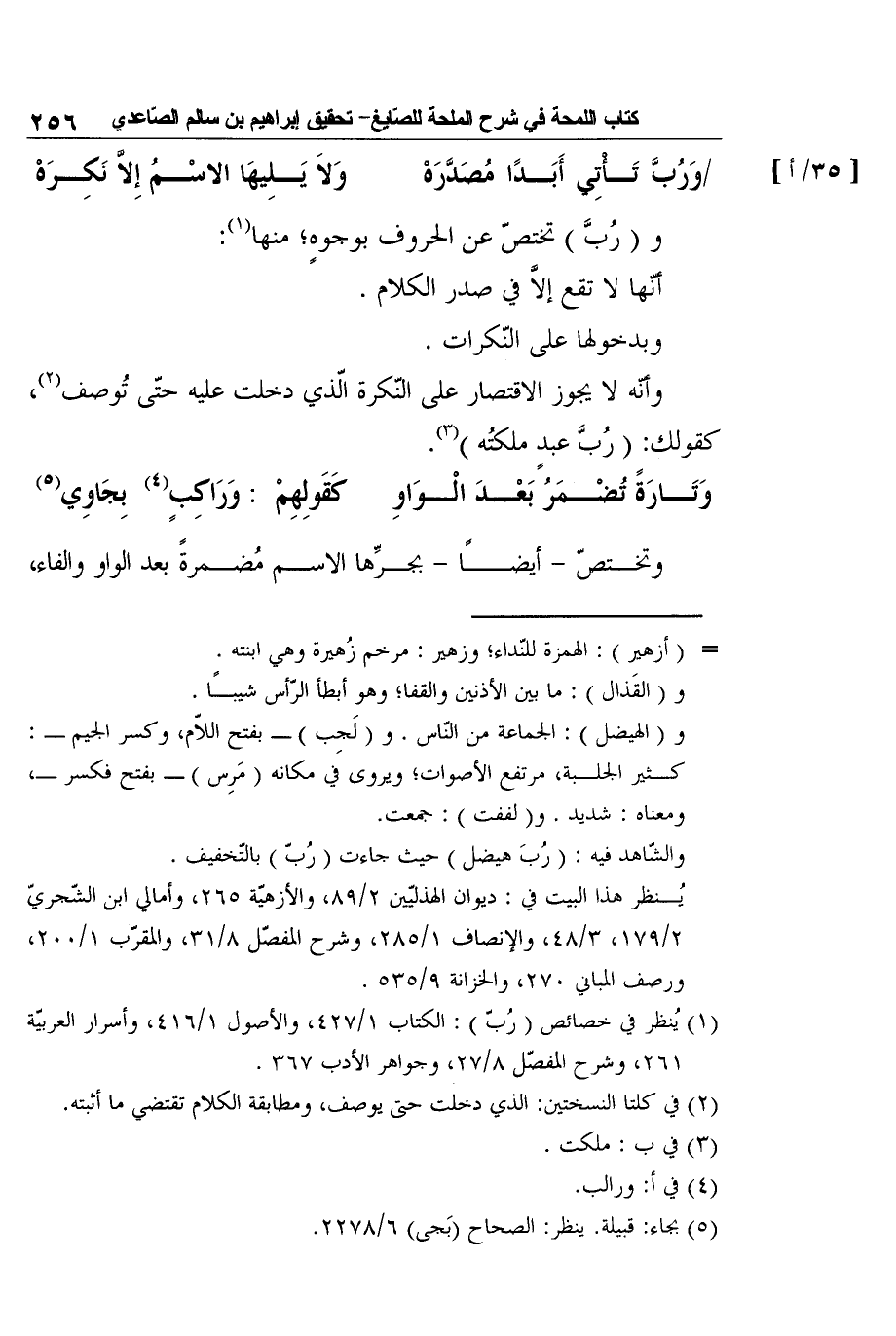 1 يُنظر في خصائص (رُبّ) : الكتاب 1/427، والأصول 1/416، وأسرار العربيّة 261، وشرح المفصّل 8/27، وجواهر الأدب 367.