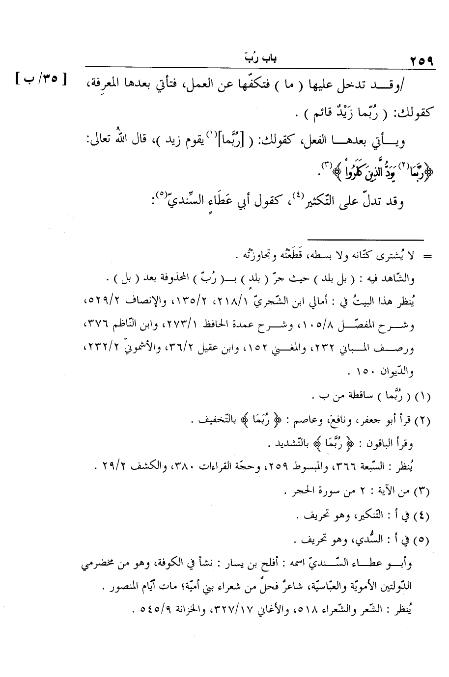 ويأتي بعدها الفعل، كقولك: ( [رُبَّما] 1 يقوم زيد) ، قال اللهُ تعالى: {رُبَّمَا2 يَوَدُّ الَّذِينَ كَفَرُواْ} 3.