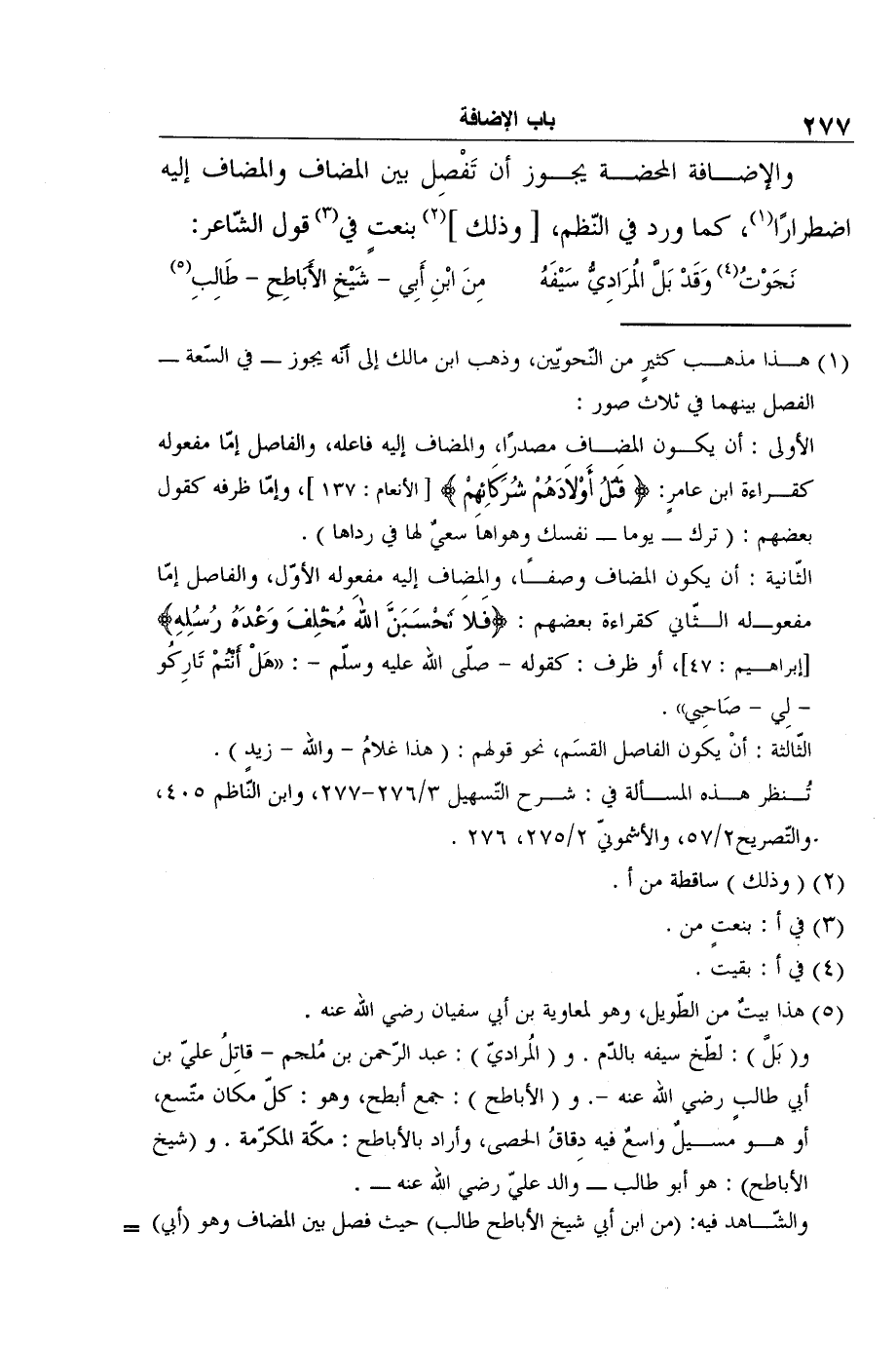 1 هذا مذهب كثيرٍ من النّحويّين، وذهب ابن مالك إلى أنّه يجوز - في السّعة- الفصل بينهما في ثلاث صور:
