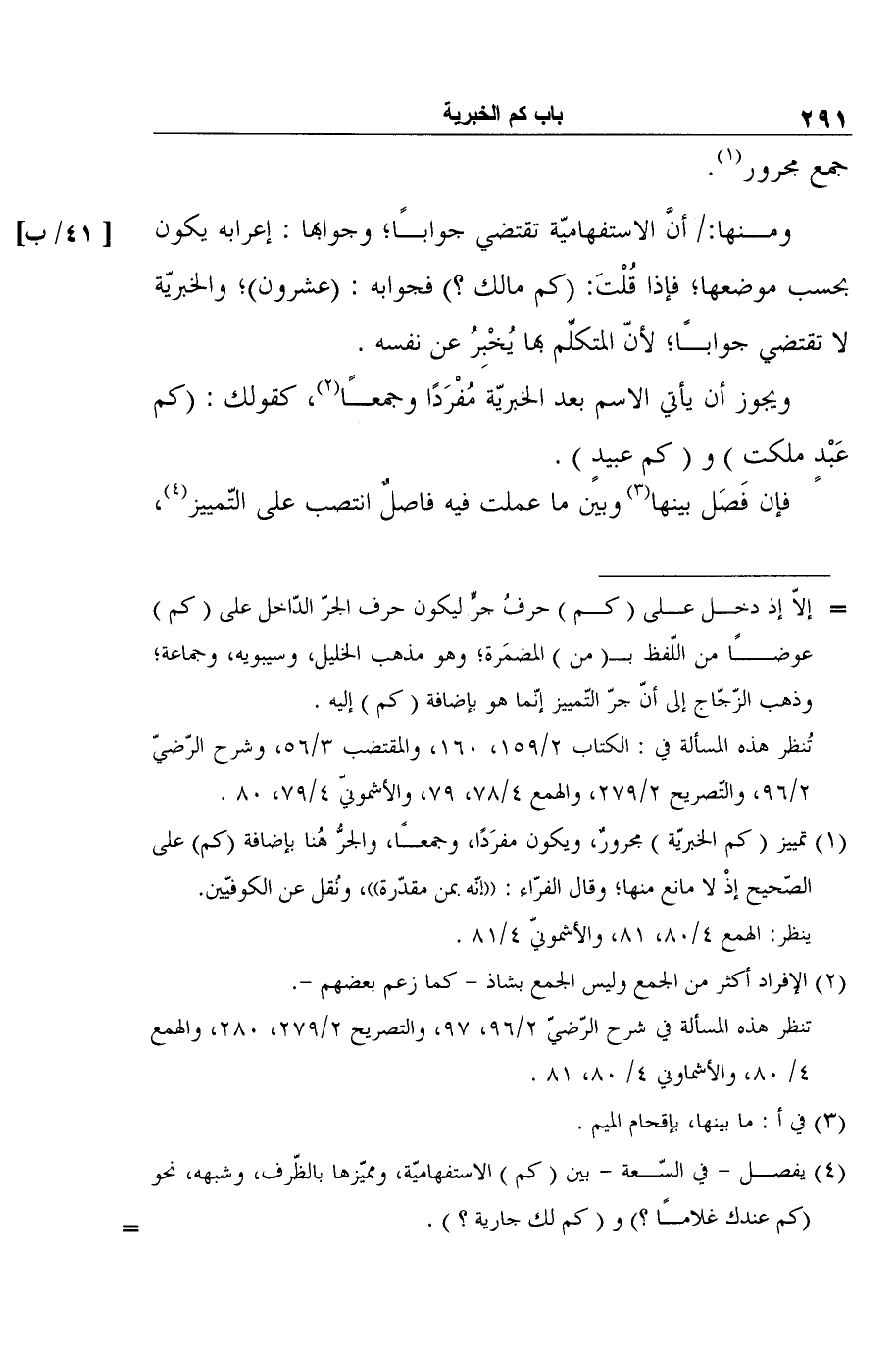1 تمييز (كم الخبريّة) مجرورٌ، ويكون مفرَدًا، وجمعًا، والجرُّ هُنا بإضافة (كم) على الصّحيح إذْ لا مانع منها؛ وقال الفرّاء: "إنّه بمن مقدّرة"، ونُقل عن الكوفيّين.