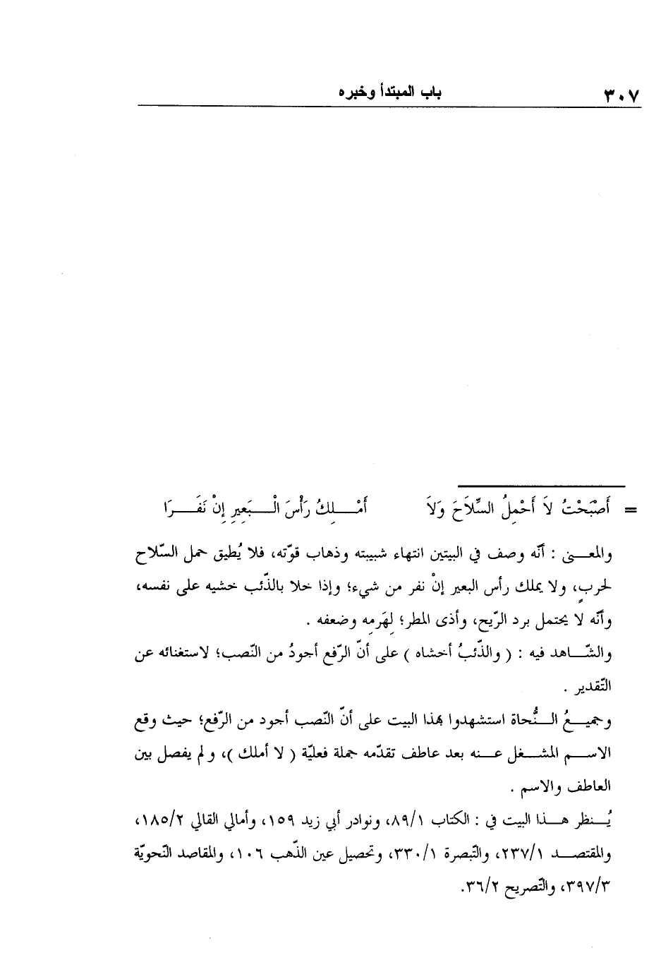 يُنظر هذا البيت في: الكتاب 1/89، ونوادر أبي زيد 159، وأمالي القالي 2/185، والمقتصد 1/237، والتّبصرة 1/330، وتحصيل عين الذّهب 106، والمقاصد النّحويّة 3/397، والتّصريح 2/36.