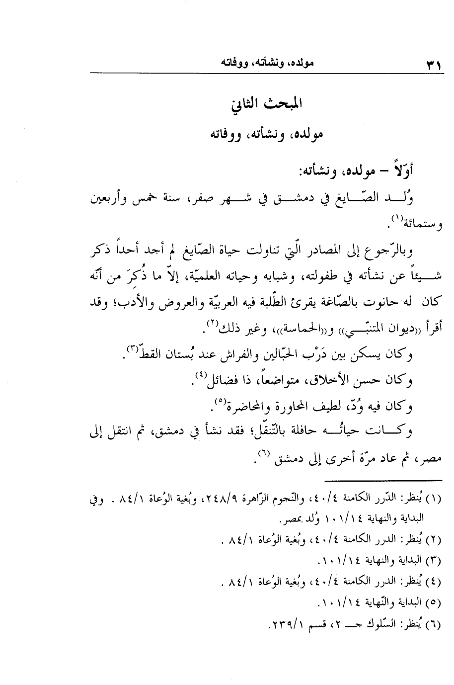 1 يُنظر: الدّرر الكامنة 4/40، والنّجوم الزّاهرة 9/248، وبُغية الوُعاة 1/84. وفي البداية والنهاية 14/101 وُلد بمصر.