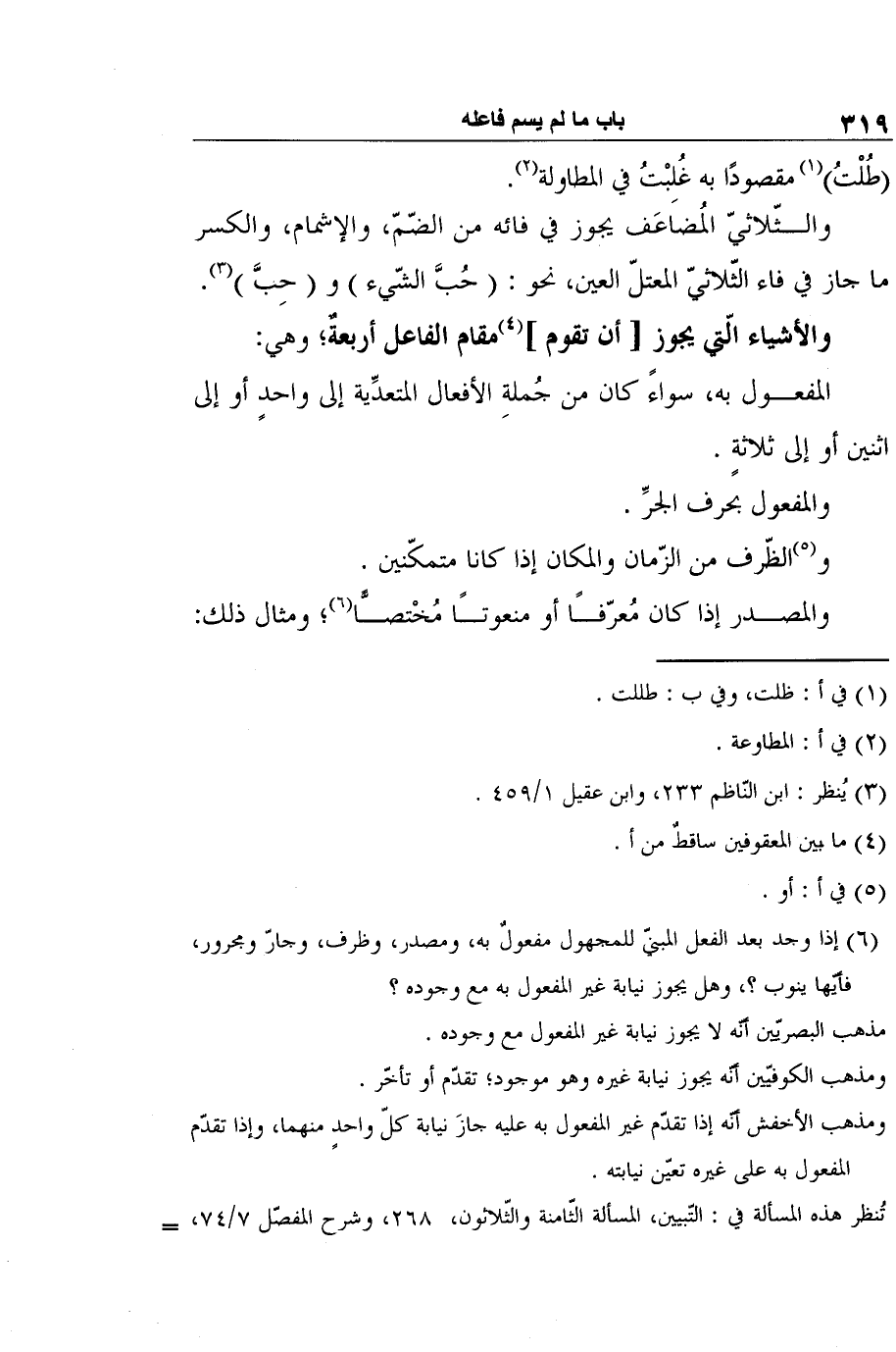 3 يُنظر: ابن النّاظم 233، وابن عقيل 1/459.