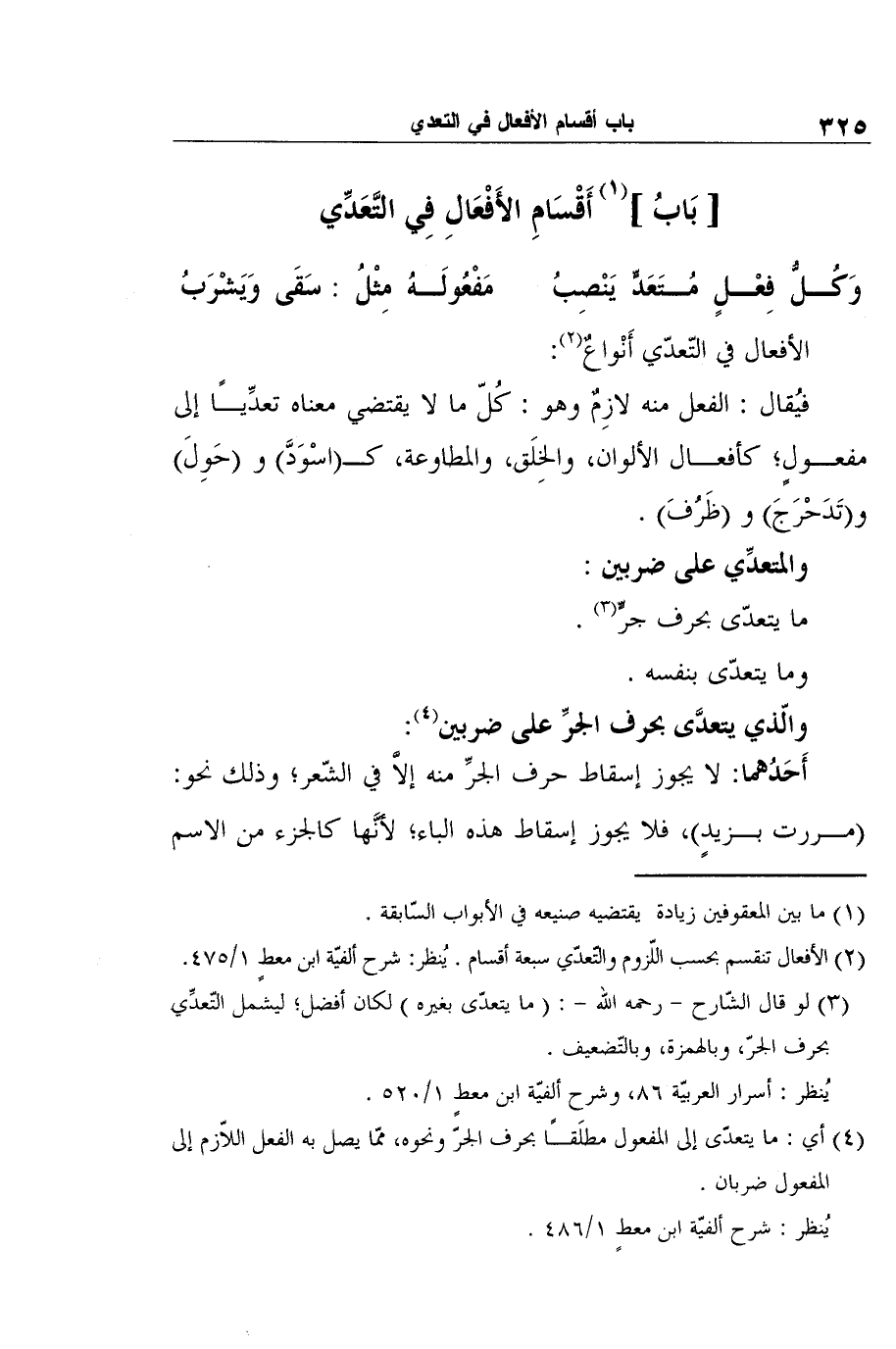 2 الأفعال تنقسم بحسب اللّزوم والتّعدّي سبعة أقسام. يُنظر: شرح ألفيّة ابن معطٍ 1/475.