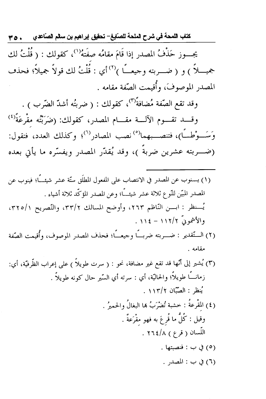 3 يُشير إلى أنّها قد تقع غير مضافة، نحو: (سرت طويلاً) على إعراب الظّرفيّة، أي: زمانًا طويلاً؛ والحاليّة، أي: سرته أي السّير حال كونه طويلاً.
