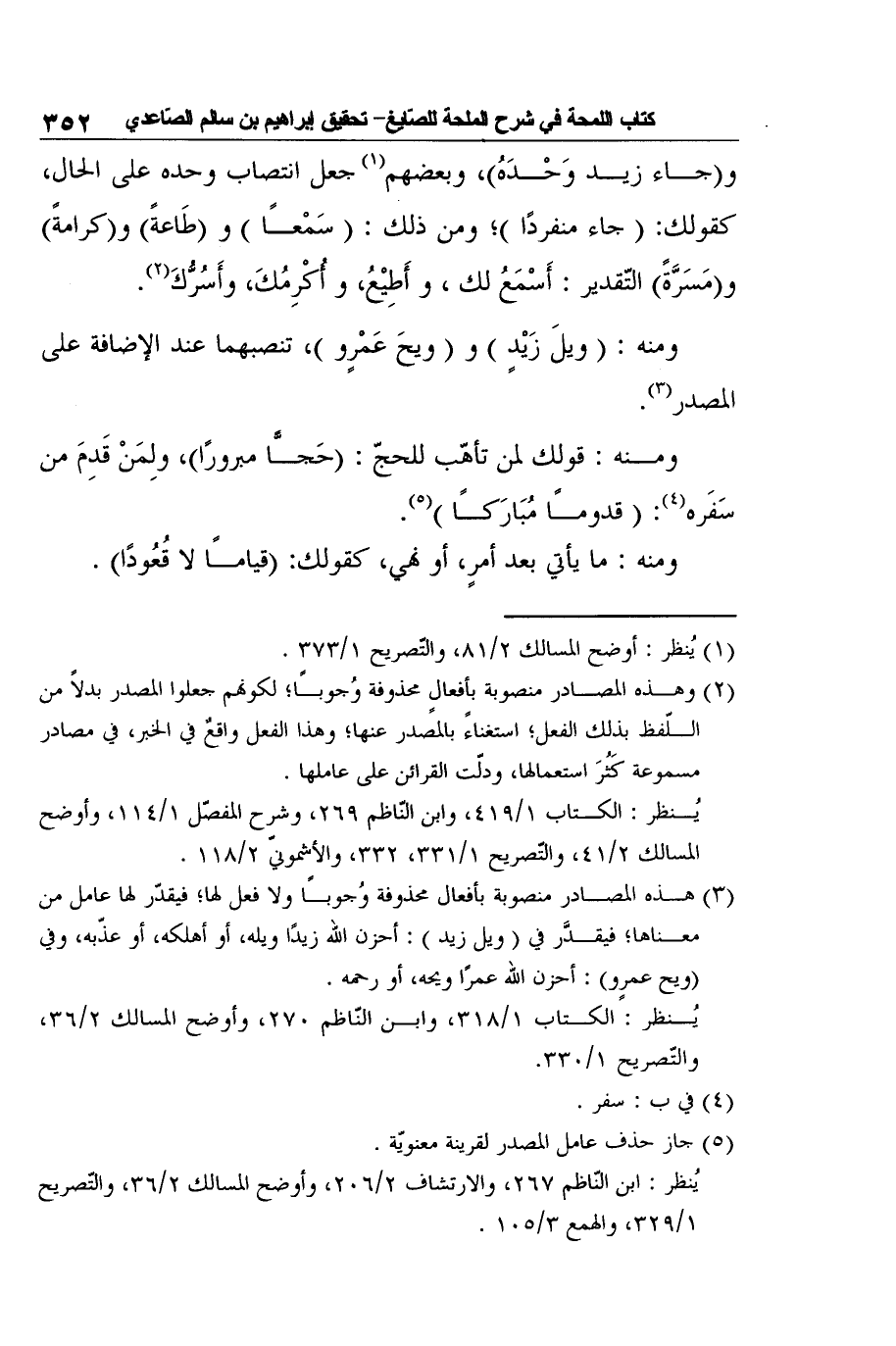 ومنه: قولك لمن تأهّب للحجّ: (حَجًّا مبرورًا) ، ولِمَنْ قَدِمَ من سَفَره4: (قدومًا مُبَارَكًا) 5.