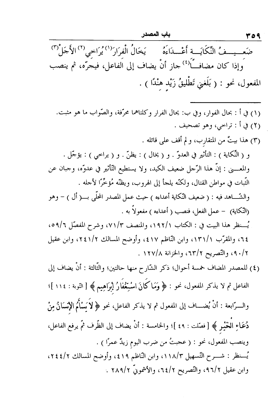 4 للمصدر المضاف خمسة أحوال؛ ذكر الشّارح منها حالتين؛