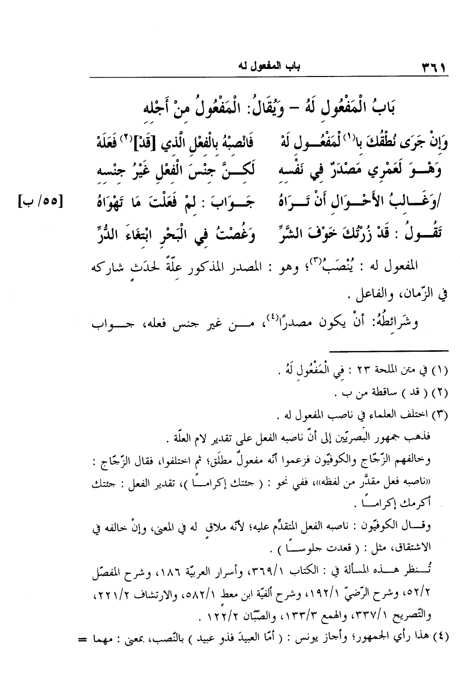 1 في متن الملحة 23: فِي الْمَفْعُولِ لَهُ.