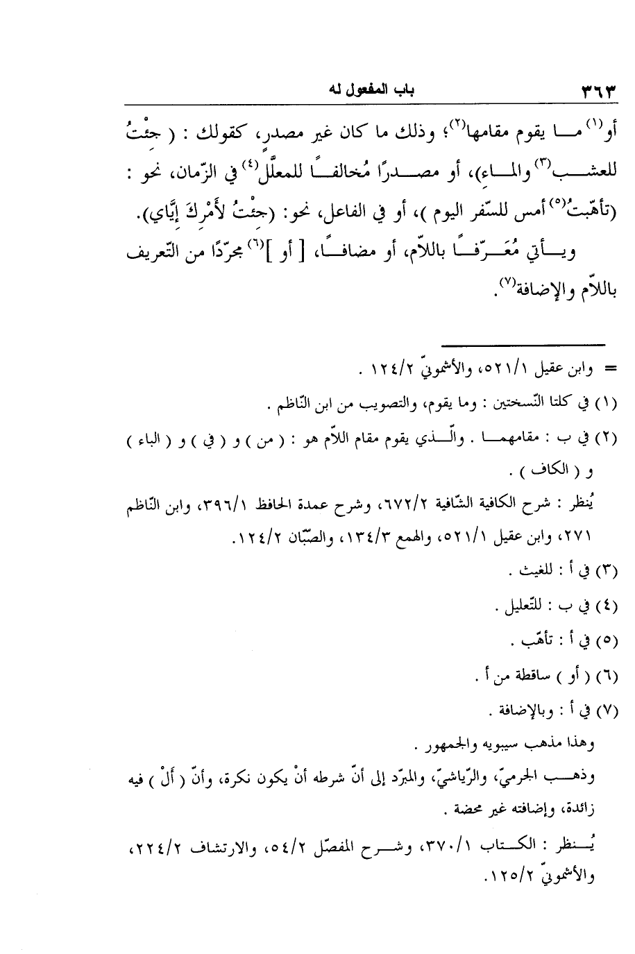 يُنظر: شرح الكافية الشّافية 2/672، وشرح عمدة الحافظ 1/396، وابن النّاظم 271، وابن عقيل 1/521، والهمع 3/134، والصّبّان 2/124.