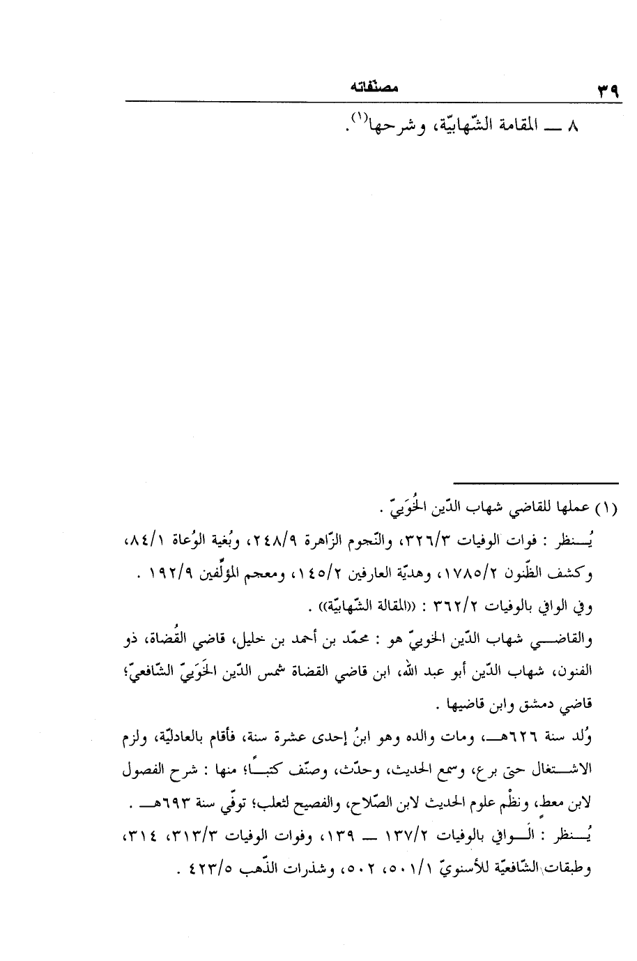 وفي الوافي بالوفيات 2/362: (المقالة الشّهابيّة) .