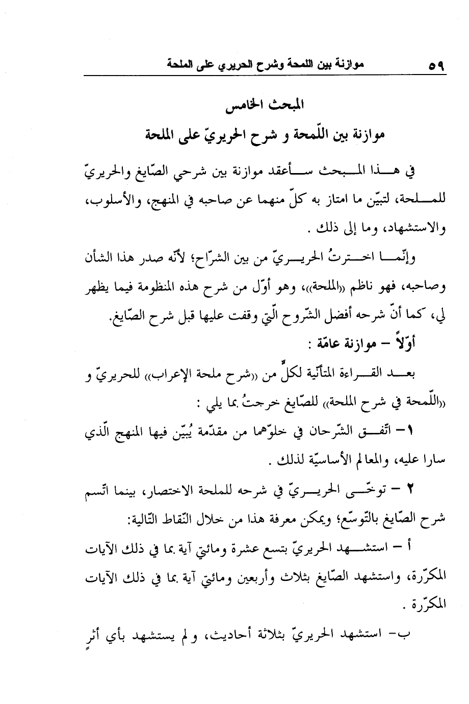 المبحث الخامس: موازنة بين اللّمحة وشرح الحريريّ على الملحة