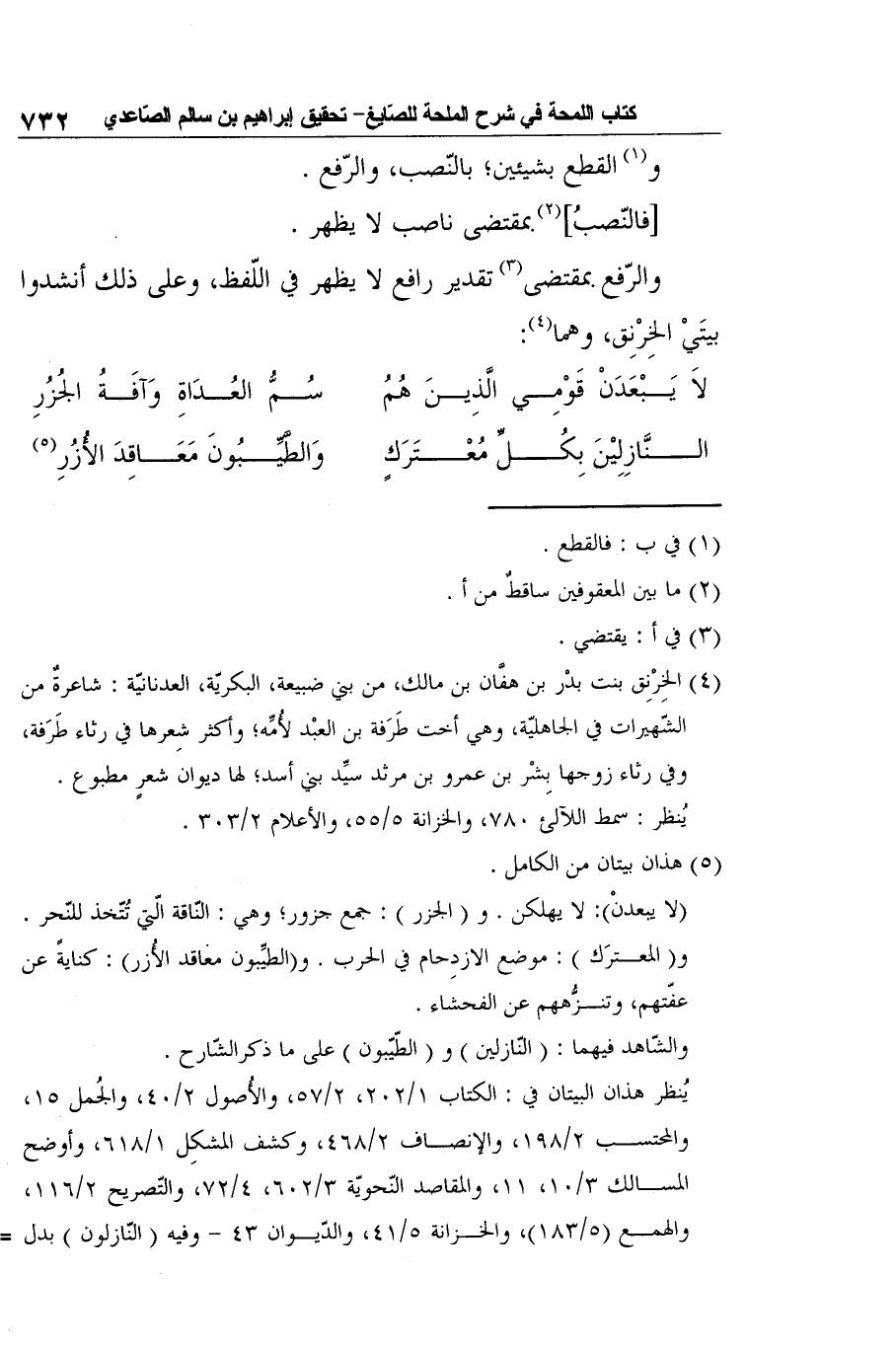 والرّفع بمقتضى3 تقدير رافع لا يظهر في اللّفظ، وعلى ذلك أنشدوا بيتَيْ الخِرْنِق، وهما4: