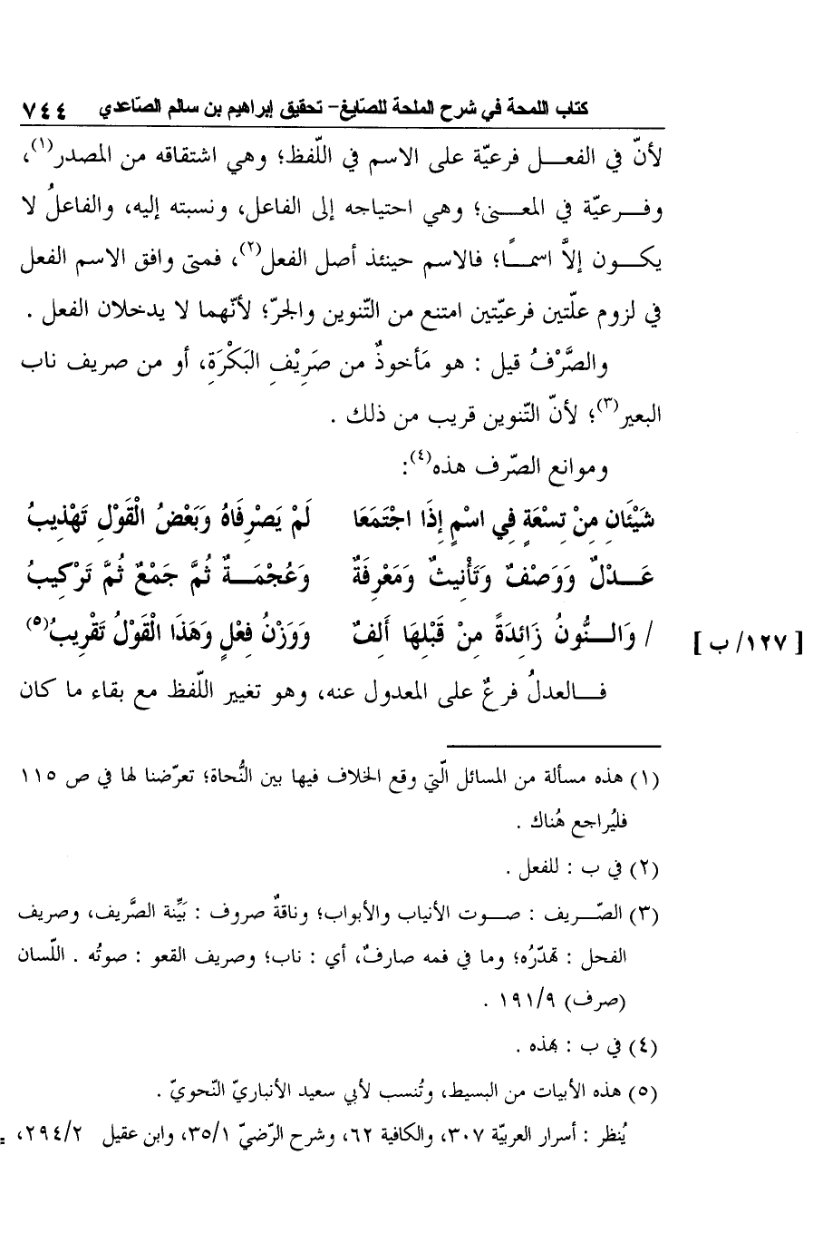 والصَّرْفُ قيل: هو مَأخوذٌ من صَرِيْفِ البَكْرَةِ، أو من صريف ناب البعير3؛ لأنّ التّنوين قريب من ذلك.