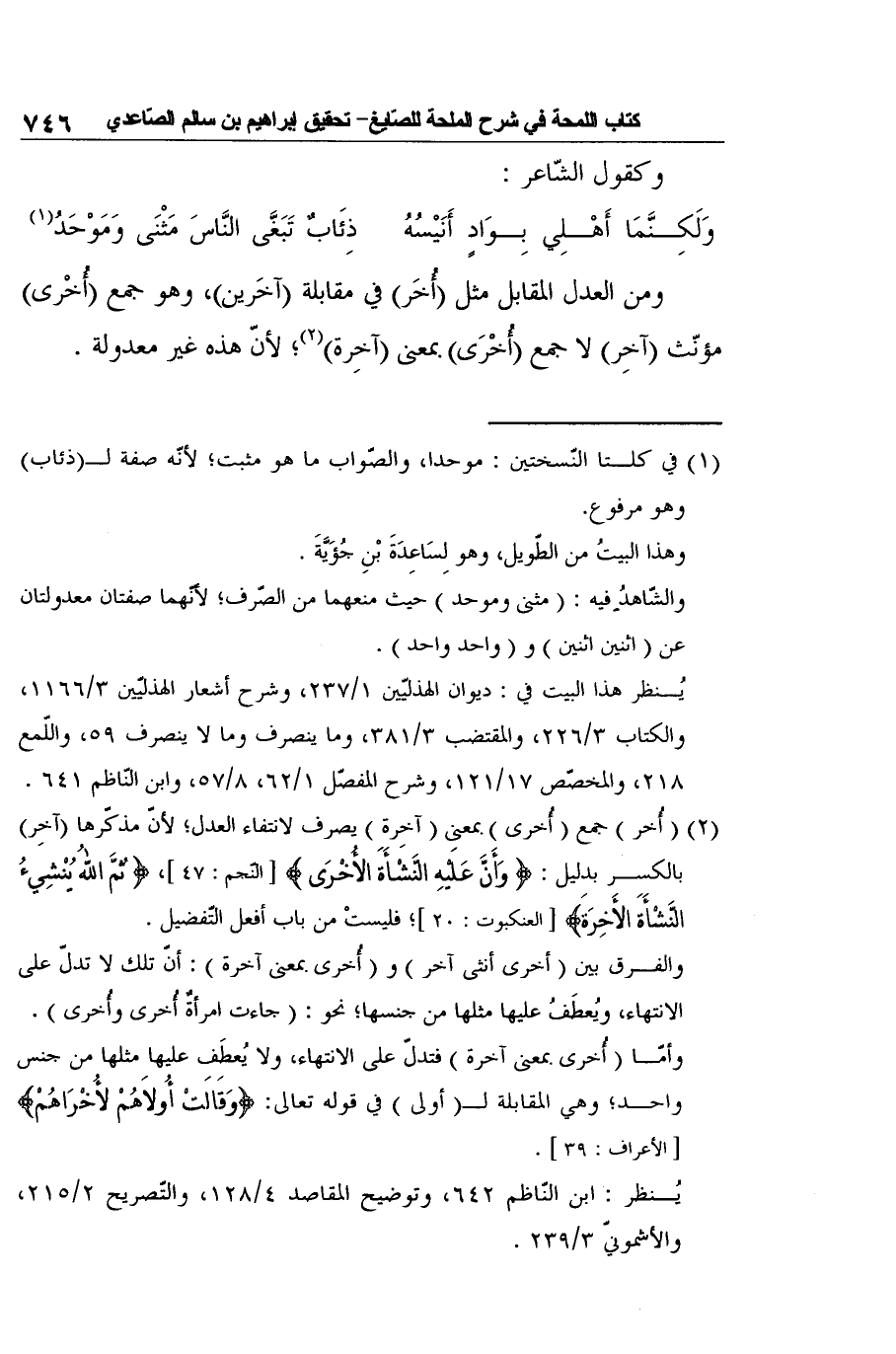 يُنظر هذا البيت في: ديوان الهذليّين 1/237، وشرح أشعار الهذليّين 3/1166، والكتاب 3/226، والمقتضب 3/381، وما ينصرف وما لا ينصرف 59، واللّمع 218، والمخصّص 17/121، وشرح المفصّل 1/62، 8/57، وابن النّاظم 641.