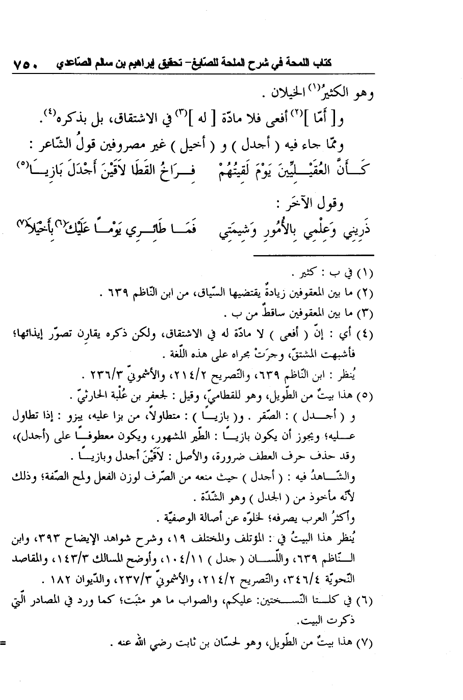 والشّاهدُ فيه: (أجدل) حيث منعه من الصّرف لوزن الفعل ولمح الصّفة؛ وذلك لأنّه مأخوذ من (الجدل) وهو الشّدّة.