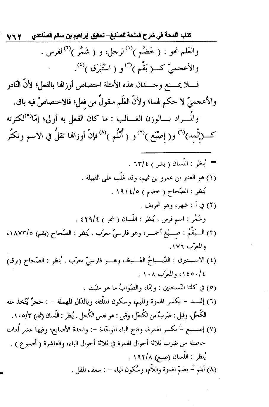 والمُراد بالوزن الغالب: ما كان الفعل به أولى؛ إمّا5لكثرته ك (إِثْمِد) 6 و (إِصْبَع) 7 و (أُبْلُم) 8 فإنّ أوزانها تقلُّ في الاسم وتكثُر
