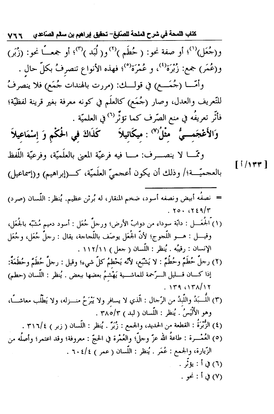 وَالأَعْجَمِيُّ مِثْلُ7: مِيكَائِيلاَ ... كَذَاكَ فِي الحُكْمِ وَإِسْمَاعِيلاَ