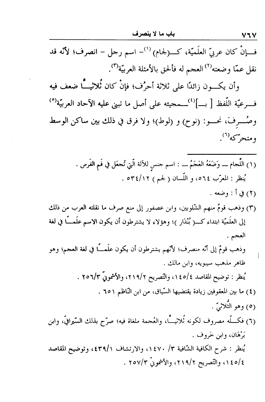 6 فكلّه مصروف لكونه ثُلاثيًّا، والعُجمة ملغاة فيه؛ صرّح بذلك السّيرافيّ، وابن بَرْهَان، وابن خَروف.