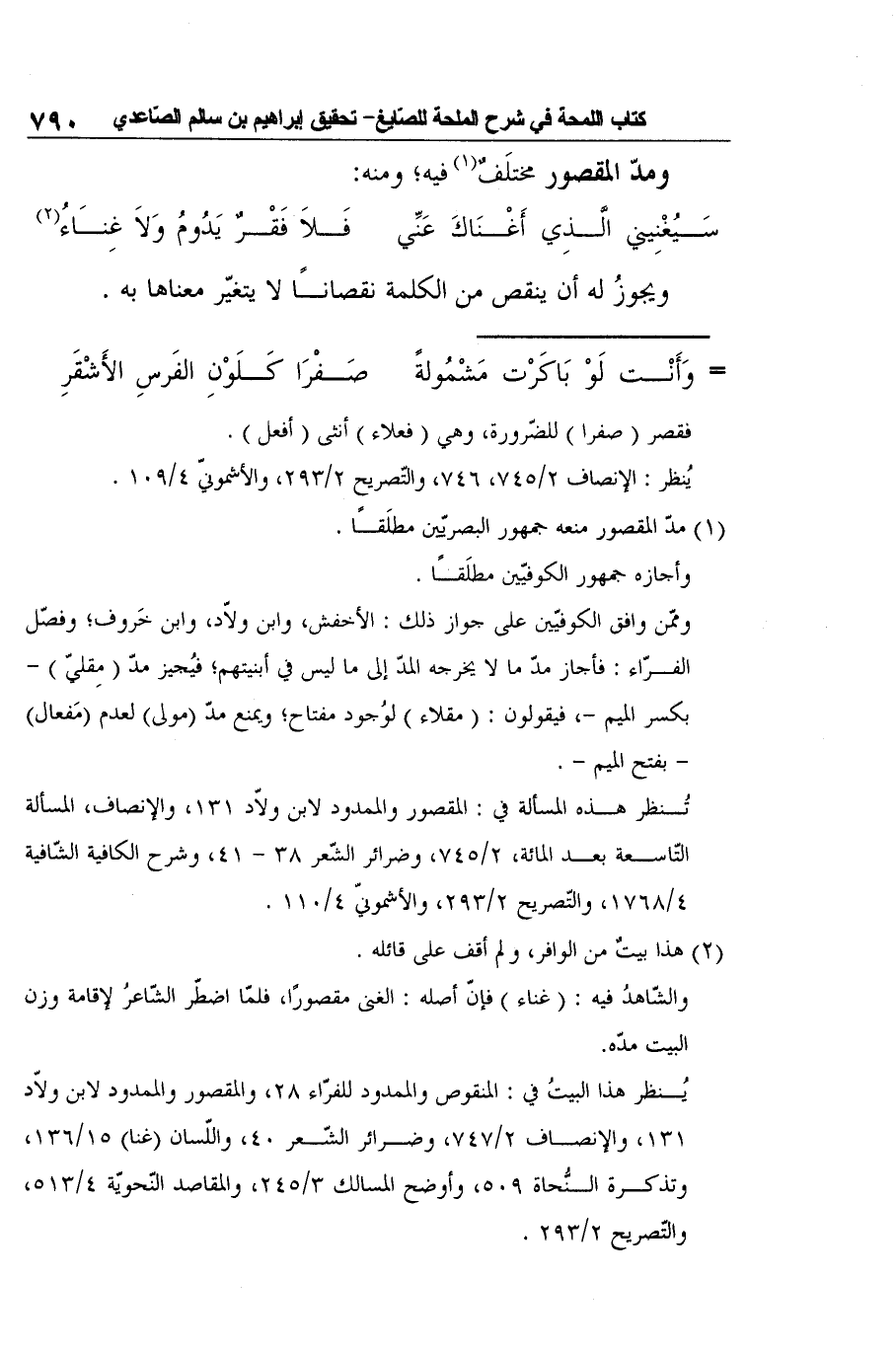 1 مدّ المقصور منعه جمهور البصريّين مطلَقًا.