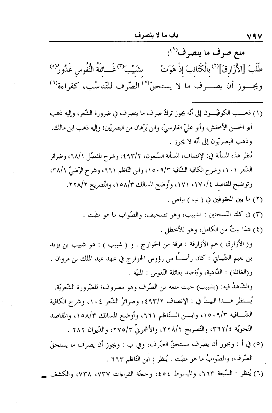 1 ذهب الكوفيّون إلى أنّه يجوز تركُ صرف ما ينصرف في ضرورة الشّعر، وإليه ذهب أبو الحسن الأخفش، وأبو عليّ الفارسيّ، وابن بَرْهان من البصريّين؛ وإليه ذهب ابن مالك.