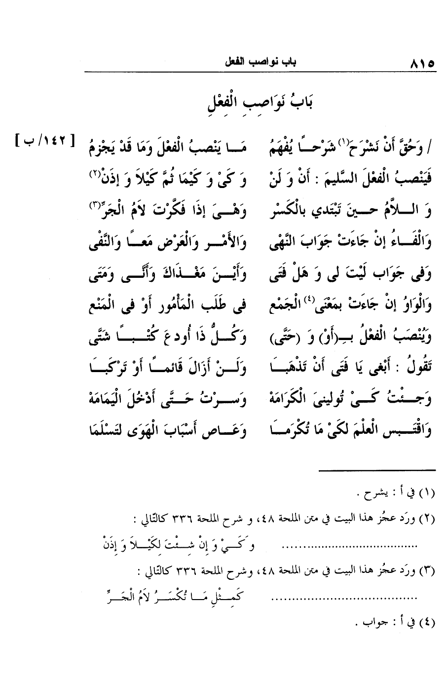 / وَحُقَّ أَنْ نَشْرَحَ1 شَرْحًا يُفْهَمُ ... مَا ينُْصِبُ الْفِعْلَ وَمَا قَدْ يَجْزِمُ