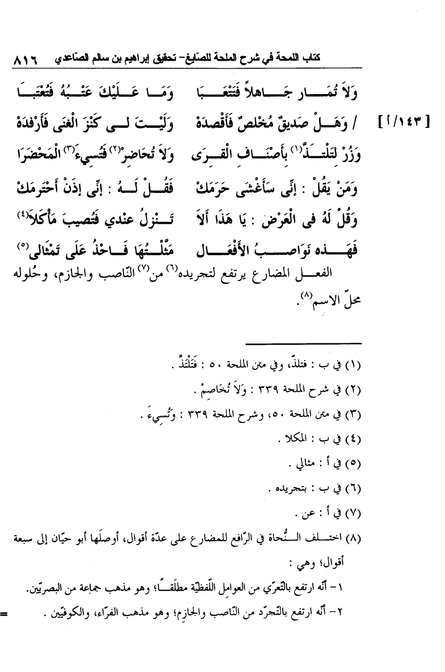 2 في شرح الملحة 339: وَلاَ تُخَاصِمْ.