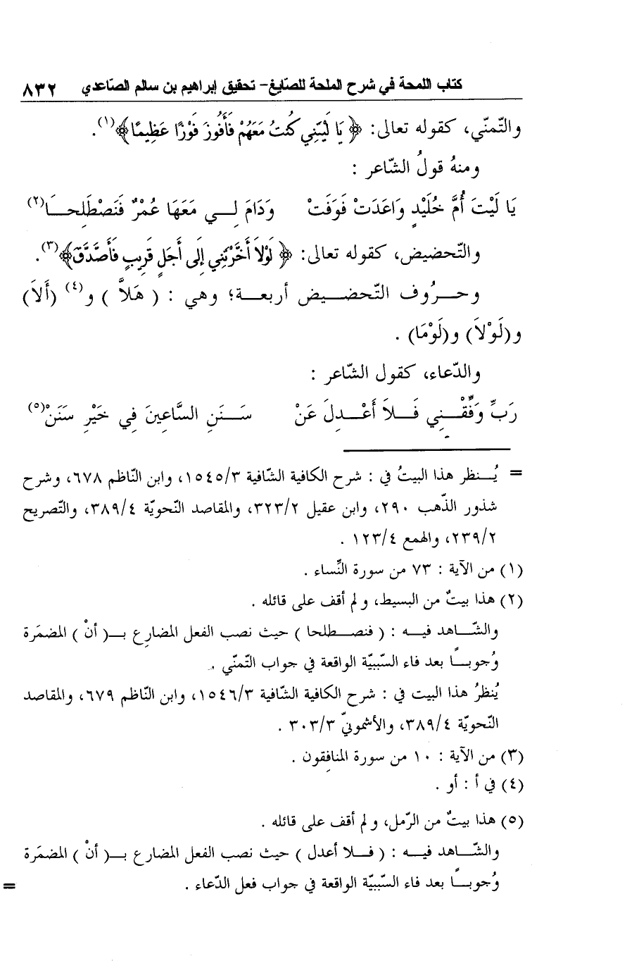 والشّاهد فيه: (فنصطلحا) حيث نصب الفعل المضارِع بـ (أنْ) المضمَرة وُجوبًا بعد فاء السّببيّة الواقعة في جواب التّمنّي.