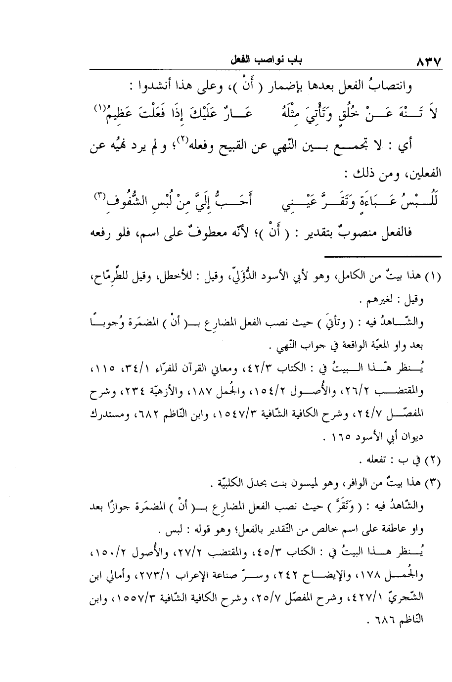 يُنظر هذا البيتُ في: الكتاب 3/42، ومعاني القرآن للفرّاء 1/34، 115، والمقتضب 2/26، والأُصول 2/154، والجُمل 187، والأزهيّة 234، وشرح المفصّل 7/24، وشرح الكافية الشّافية 3/1547، وابن النّاظم 682، ومستدرك ديوان أبي الأسود 165.
