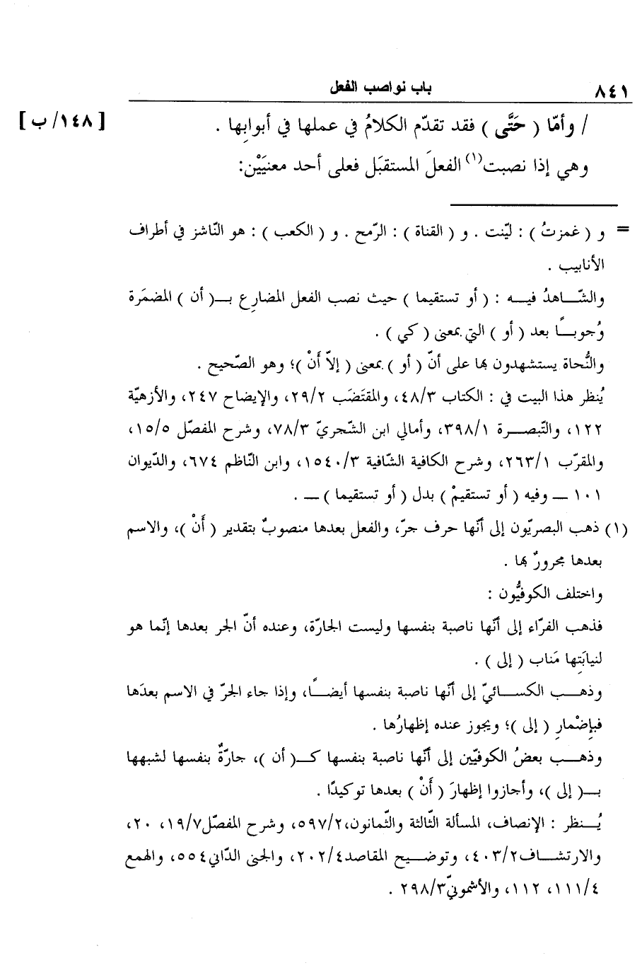 يُنظر: الإنصاف، المسألة الثّالثة والثّمانون،2/597، وشرح المفصّل7/19، 20، والارتشاف2/403، وتوضيح المقاصد4/202، والجنى الدّاني554، والهمع 4/111، 112، والأشمونيّ3/298.