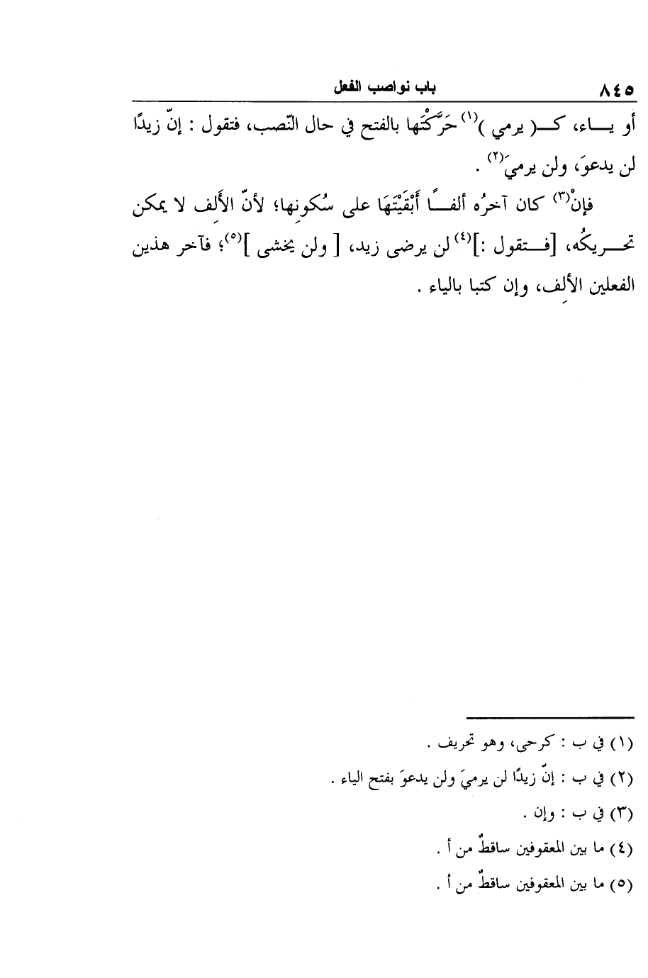 2 في ب: إنّ زيدًا لن يرميَ ولن يدعوَ بفتح الياء.